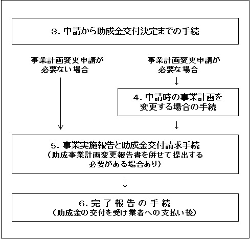 助成事業の事務手続は、以下の図の流れで行われます。